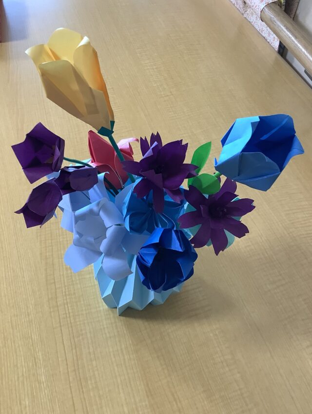 ご利用者様に、貼る係と切る係に分かれて、作業を行っていただきました。