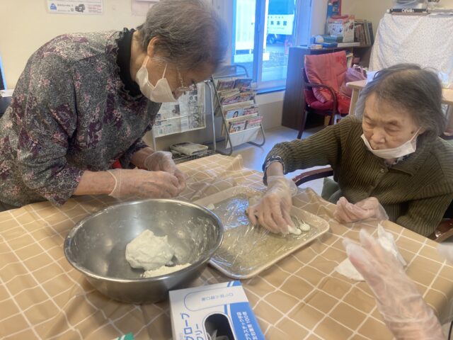 綺麗に白玉豆腐を丸めてくださり、盛り付けも協力して行いました。たくさん作り「手作りは美味しい!」「出来立てはいいね!」と、おかわり殺到となり完食でしたよ♪