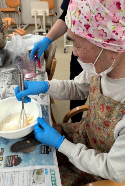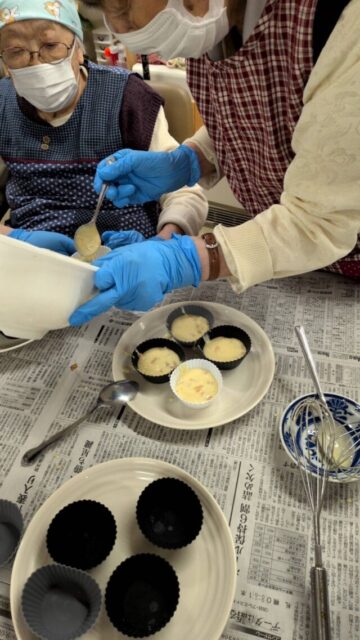 おやつ作りレクは夏の間はお休みしていたので久しぶりの開催となりましたが、ふわふわの蒸しパンは大好評なので職員もご利用者様も「また作ろうね」と笑顔いっぱいのレクとなりました。