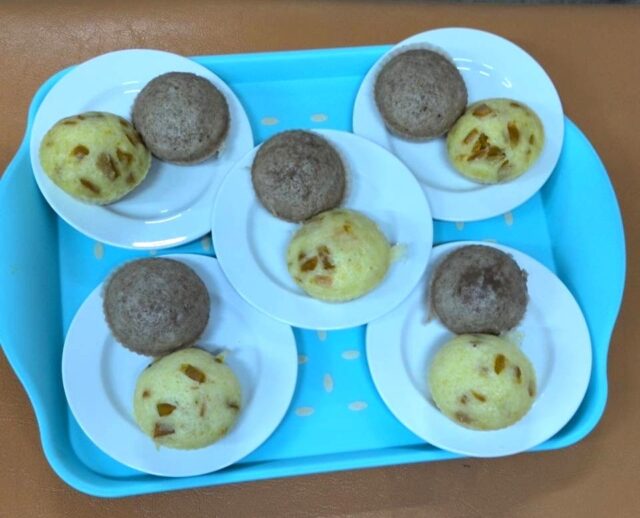 そんな北見では先日おやつ作りレクを行い、ご利用者様たちと簡単蒸しパン作りをしました。ホットケーキミックスを使用したので混ぜるだけですが、生地にココアを入れたり、カボチャを細かく刻んで茹でたもの混ぜたり2種類の蒸しパンを作りました。男性ご利用者様も手際よく生地を混ぜてくださったり型に流し入れたり、積極的に参加してくださいました。そして皆様の期待通り、ふっくらと蒸し上がり、大成功~。
