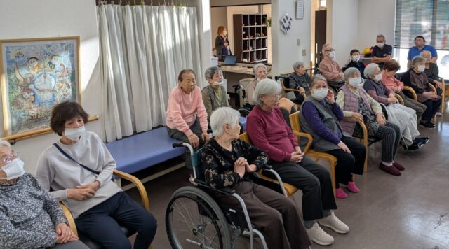 今月12/6はショートで年内最終レクとして大正琴のさくら会の皆さんにお越し頂き少し早めのクリスマスイベントを開催しました(^^♪ いつもの懐かしの懐メロにクリスマスソングも取り入れご利用者様もスタッフも楽しい時間を過ごせました。皆さんマイクを渡され最初は照れくさそうに歌われていましたが後半は積極的にマイクを持ち笑顔で歌われていました!