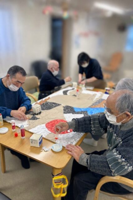 ご利用者様の皆様も細かな作業に取り組まれており、「細かいなー」「どんな絵ができるのかな」など会話することもあれば、真剣なあまり黙々と作業される時もあります。