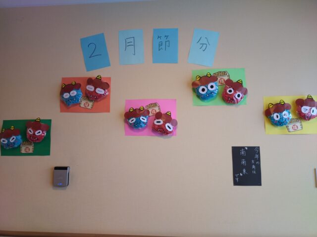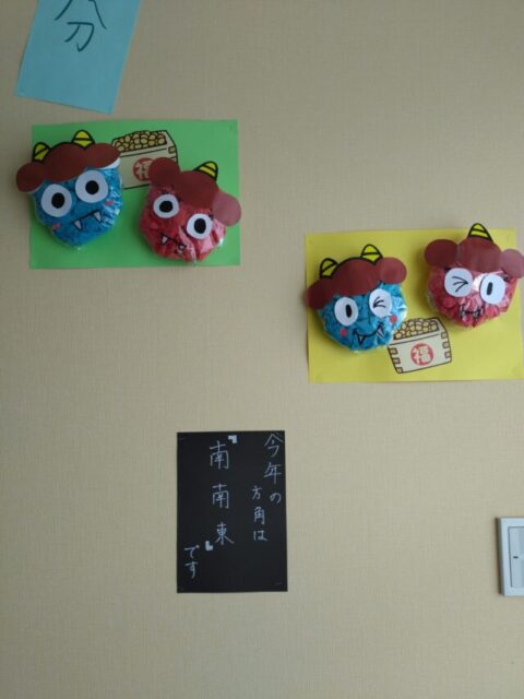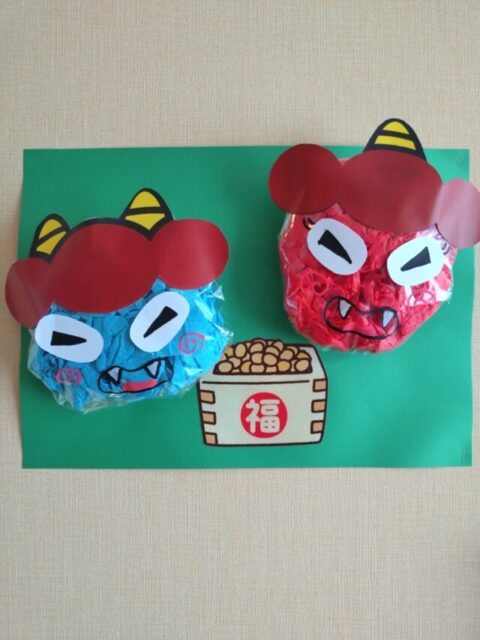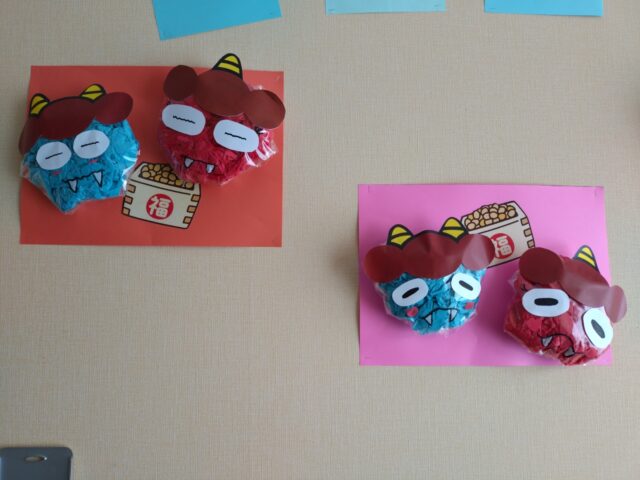完成した作品を眺めながら、「節分が楽しみだね」と笑顔でお話しされる姿がとても印象的でした。