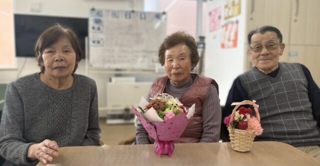 令和8年1月!江別中央のご利用者様でお誕生日を迎える方が10名いらっしゃいます。10名様の平均年齢は88歳です。土曜日ご利用の麻雀仲間の3名様は、御年も同じという事もありいつも楽しく仲良く通って下さっております!これからも元気に仲良くつぼみに来ていただきたいと思っております☺皆様の若さと元気の秘訣をお聞きすると「気の合う仲間と、楽しく話して笑って美味しいご飯を食べる事!」私もそう感じます。「皆様、おめでとうございます!」お誕生日の方へ、お写真を取らせていただきバースデーカードをお渡ししております。これからもたくさん関わらせていただき、皆様笑顔で通って頂けるよう様々なイベントも考えながら取り組んでまいります!お楽しみに♪