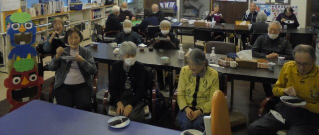 今年の恵方は南南東です。ご利用者様の皆様で同じ向きを向き、鬼と一緒に笑顔で味わいました。