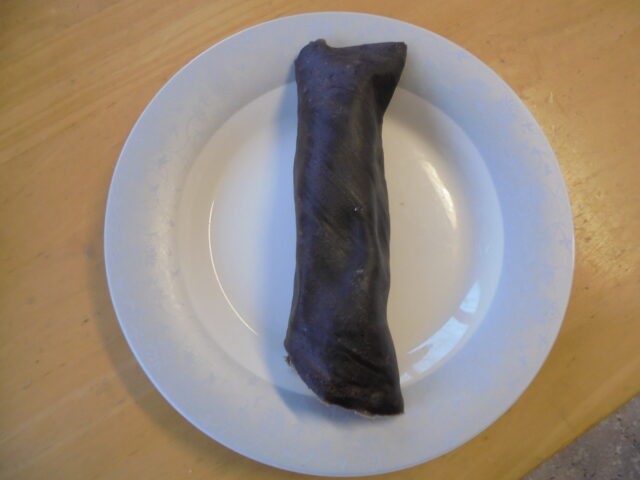 クレープ生地にココアパウダーを混ぜて海苔に見立て、中には生クリームとフルーツを包んだ、見た目も可愛らしい恵方巻風スイーツです。