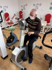 写真のご利用者様は、足のペダルは使用せず、腕の回転運動のみを行われています。