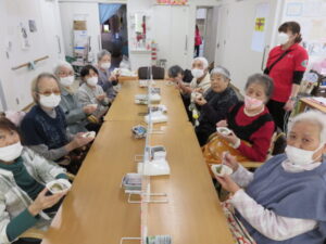 「美味しいね!」「もう一つ食べたいわ!」「手作りなんてすごいね」など嬉しいお言葉も頂き、皆さんと楽しく美味しいひな祭りの1日となりました。