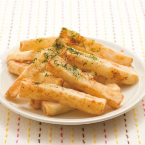 - 外はカリっと、中はホクホクの長芋のフライドポテトの完成です。